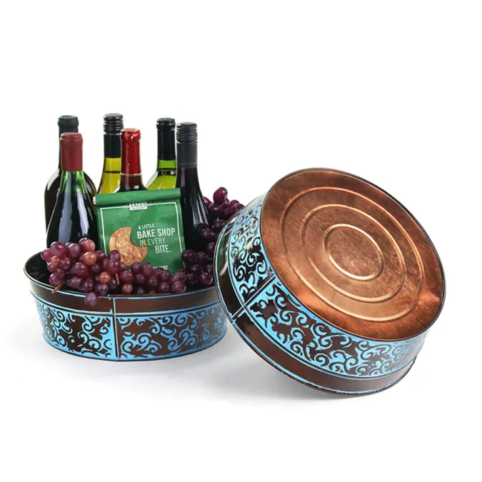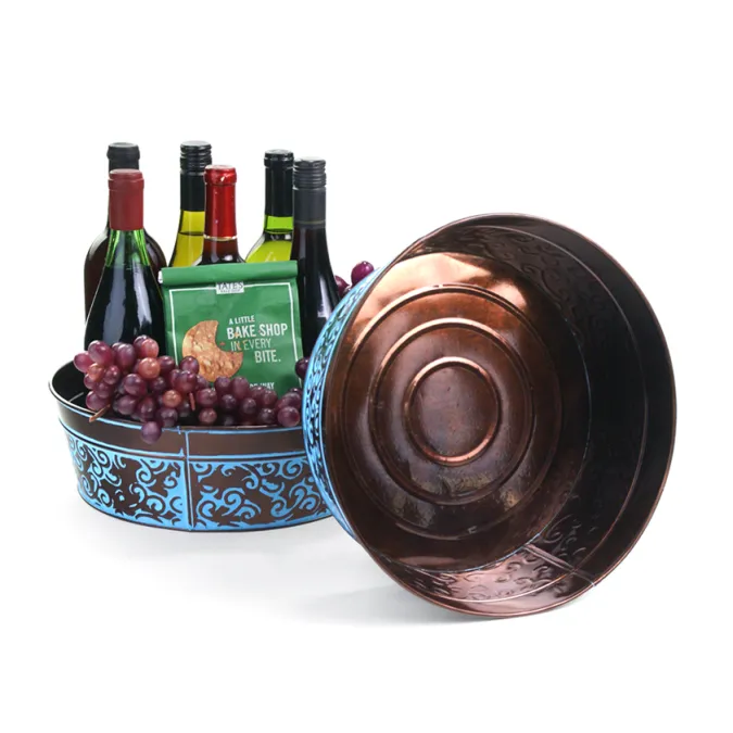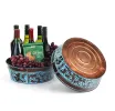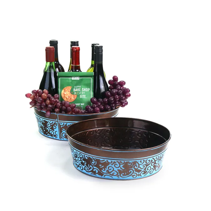 12" Metal Round Tub Dk Brown w/ Blue Swirl