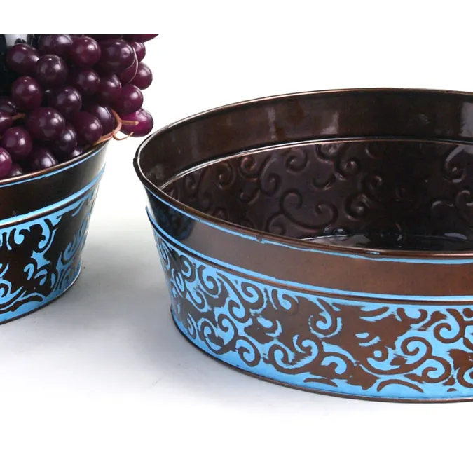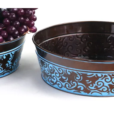 12" Metal Round Tub Dk Brown w/ Blue Swirl
