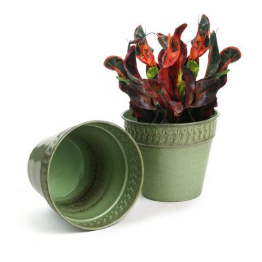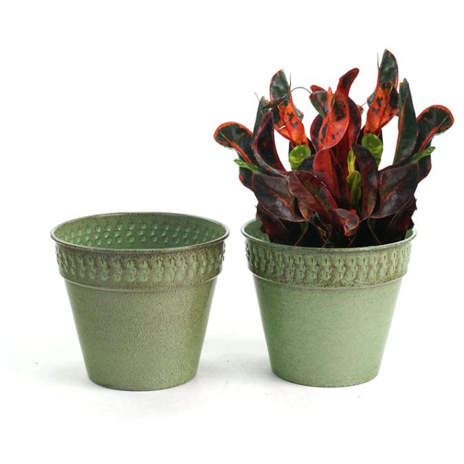 - made of solid spun iron, brushed black brush paint over green for a textured look