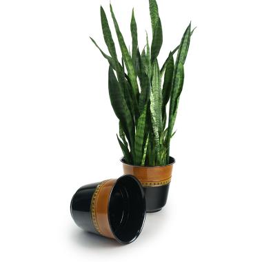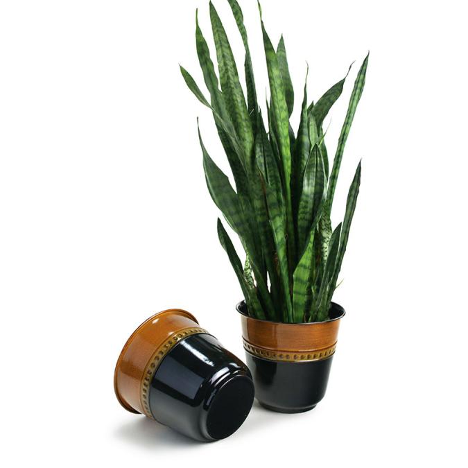 9" Solid Iron Spun Planter - Black/Brown Glazed embossed