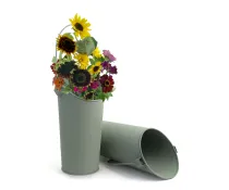 - 5.25"dia top x 5.25"H front x 8.5"H back, x 4"dia bottom x 12" tall handle
