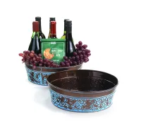 12" Oval Metal Tub Dark Brown with Blue Scroll